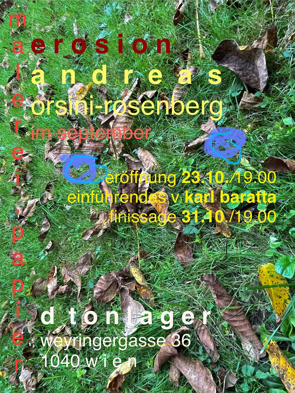 erosion, malerei papier, andreas orsini-rosenberg, eröffnung 23.10.2025 um 19 uhr, einführendes v karl baratta, finissage 31.10. / 19:00 im d_tonlager, weyringergasse 36, 1040 wien
